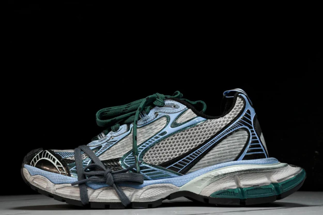 The 3XL sneaker from B’s Summer 23 Collection take the brand’s signature oversized proportions to the next level. Crafted from mesh and polyurethane, it features a worn-out and distressed effect for a bold and dystopian look. The sneaker includes the B logo at the edge of the toe and back, embossed sizing on the upper and heel, and 3XL rubber branding with reflective detail on the tongue. Reflective back and tongue pull-on tabs, along with extra laces tied around the shoes for styling purposes, enhance both style and functionality, making this sneaker a standout addition to any collection.