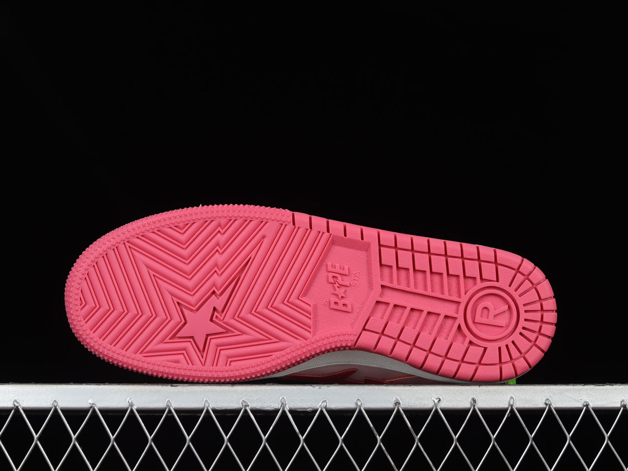 In keeping with the ABC CAMO glossy patent leather aesthetic and the classic BAPE logo stamped at the shoes’ lateral, A Bathing Ape Bape SK8 Sta ABC Camo Pink also features a branded tongue tag that accentuates the pink, light pink, and white hues.