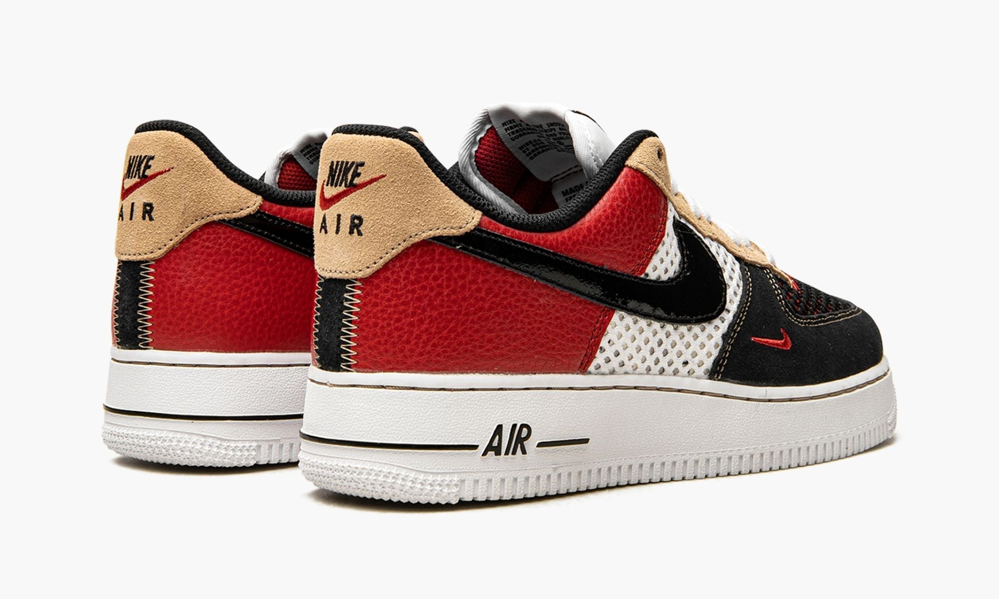 The Nike Air Force 1 Low “Alter and Reveal” is a “do-it-yourself” inspired look that brings a customizable elements to the retro basketball shoe. As its name suggests, the “Alter and Reveal” Air Force 1 Low intrigues with hidden details that are only revealed when altering the design. Both the toe and mid-panel feature a cut-away mesh construction that displays a hidden layer beneath. The rest of the shoe’s construction features different materials, including black suede on the forefoot and pebbled Gym Red leather on the quarter panel. A glossy black leather Swoosh is located on either side of the shoe and a small red Swoosh is embroidered on the lateral side of the forefoot. Classic “Nike Air” and Swoosh detailing appears on the tan suede heel tab. On the tongue, Nike replaces the Air Force 1’s original branding with a graffiti-style Air Force 1 insignia. Release date: February 8, 2022