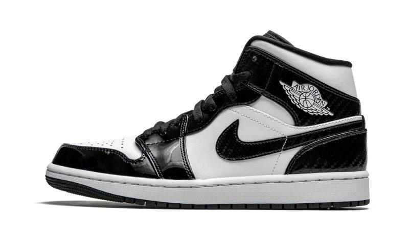 The Air Jordan 1 Mid “All-Star 2021” is a special edition of Michael Jordan’s first signature shoe that is dedicated to the 2021 NBA All-Star Game. The “All-Star 2021” colorway is dressed in a two-tone white-and-black color scheme on the popular mid-top version of the Air Jordan 1. The “All-Star 2021” features a glossy black synthetic leather material across the upper with contrasting matte white panels. The black Swooshes and ankle and heel panels also feature a faux carbon fiber texture for an added dimension to the colorway. A circular “Jumpman” logo appears on the black nylon tongue. Release date: February 2021.