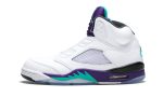 The Air Jordan 5 “Fresh Prince” is a special edition of the iconic “Grape” colorway that was created to celebrate Will Smith’s 50th birthday in 2018. Smith’s character on the beloved television show “The Fresh Prince of Bel-Air” famously wore the Air Jordan 5 in early episodes without shoelaces. As a reference to that style, these Jordan 5s are designed to be worn without shoelaces and are constructed without lace eyelets. Other “Fresh Prince” details include “West Philadelphia” embossed onto each tongue, OG Nike Air branding on each heel, and graphic insoles that have “Air Jordan” printed on them in a Fresh Prince-style graffiti font. The Air Jordan 5 “Fresh Prince” released in limited quantities in September 2018.