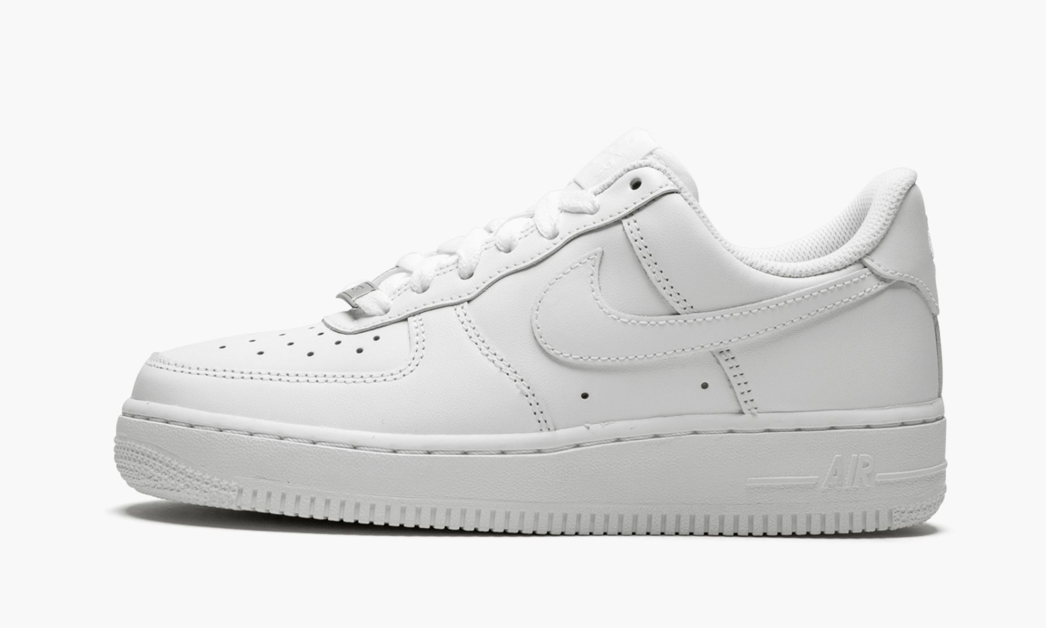 The Women’s Nike Air Force 1 Low “White on White” is the women’s sizing of the classic “Uptown” colorway. The all-white Air Force 1 Low is an essential footwear option for those looking for a versatile shoe that is always in style. Perfect for summer and beyond, the “White on White” makeup displays an all-white leather upper. Tonal Swoosh detailing can be found on either side. White embroidered “Nike Air” branding is stitched into the heel tab. Crisp white shoelaces sit on the white nylon tongue. A white “Nike Air” logo appears on the nylon tongue tab. Silver “AF1” hardware is located on the bottom of the shoelaces near the throat. This all-white-everything Women’s Nike Air Force 1 Low features a white rubber sole to finish off the look.